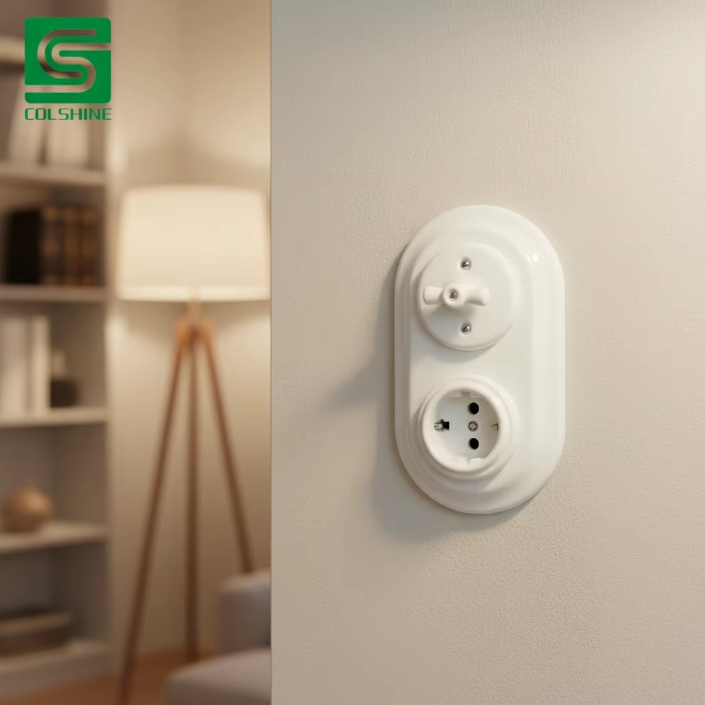 Colshine Retro Switch with Frame Wholesale #retroswitch #retrosocket #porcelainswitch #porcelainsocket #ceramicswitch #ceramicsocket #colshine #homedesign #homedecor #katypaty #fabriccable #textilecable #lightingcable #diylighting #diylighting #porcealin #ceramic #zangra #nordic