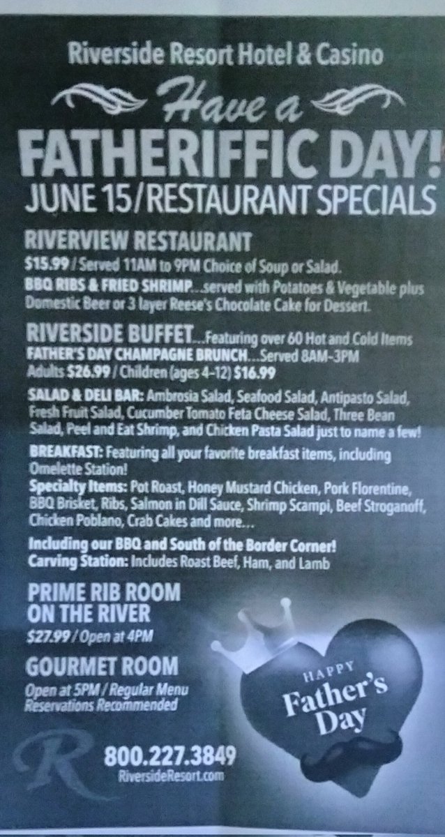 Huge FAIL. They had a wonderful Mother's day brunch in the Gourmet Room, for Father's day, we got this GARBAGE. #Laughlin #Riversideresort #Nevada #Garbage #FathersDay . @laughlinbuzz @laughlinchamber