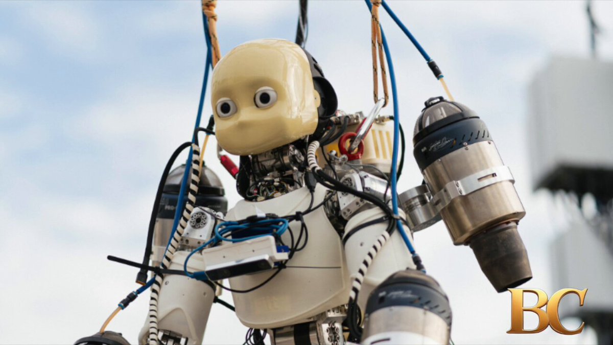 Humanoid robot achieves controlled flight using jet engines and AI-powered systems #iRonCub3 #FlyingRobot #RoboticsBreakthrough