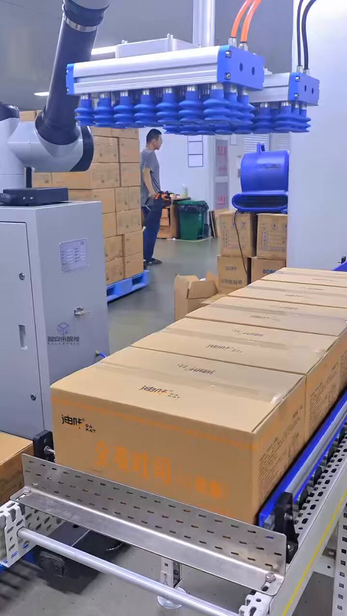 Collaborative palletizer, palletizing 2 boxes at a time, doubling efficiency! #collaborativepalletizer #palletizer #robotpalletizer #foodpalletizer