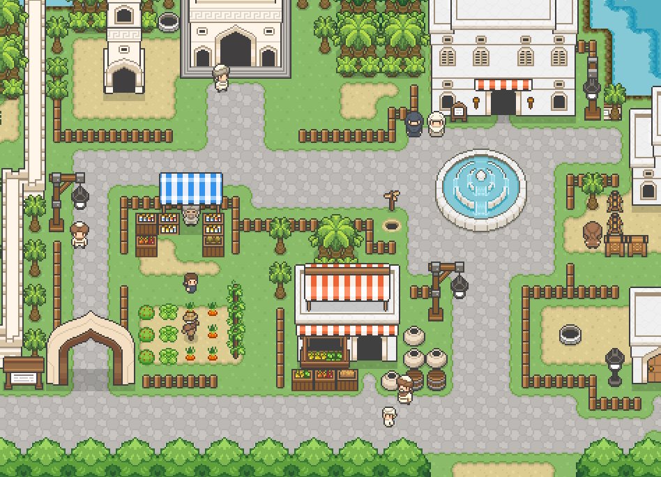 Medieval Town Based on: - (OG Map) Engine used: #RPGMakerMZ #pixelart #ドット絵 #GameAssets #gamedev #indiedev #tileset