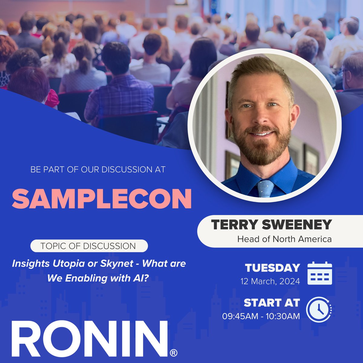 At @Samplecon, our Head of North America will be a participant in the thought-provoking discussion titled "Insights Utopia or Skynet - what are we enabling with AI?" on March 12th at 9.45 am. Delve into the intriguing world of AI with industry experts! #SampleCon2024 #MRX #AI