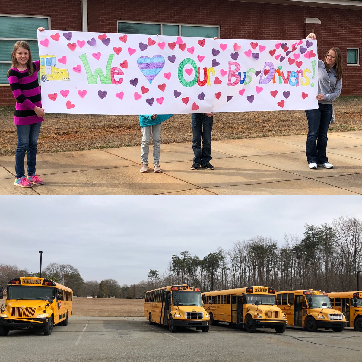 What a great way to end the week.The students did a great job on making the banner and adding their names to show their appreciation for our drivers. We ❤️ Our Bus Drivers 🚍 🚌 #ridinwithpride #schoolbusdriversrock @RichieWeaver3 @TeacherRCS @RCS_NC