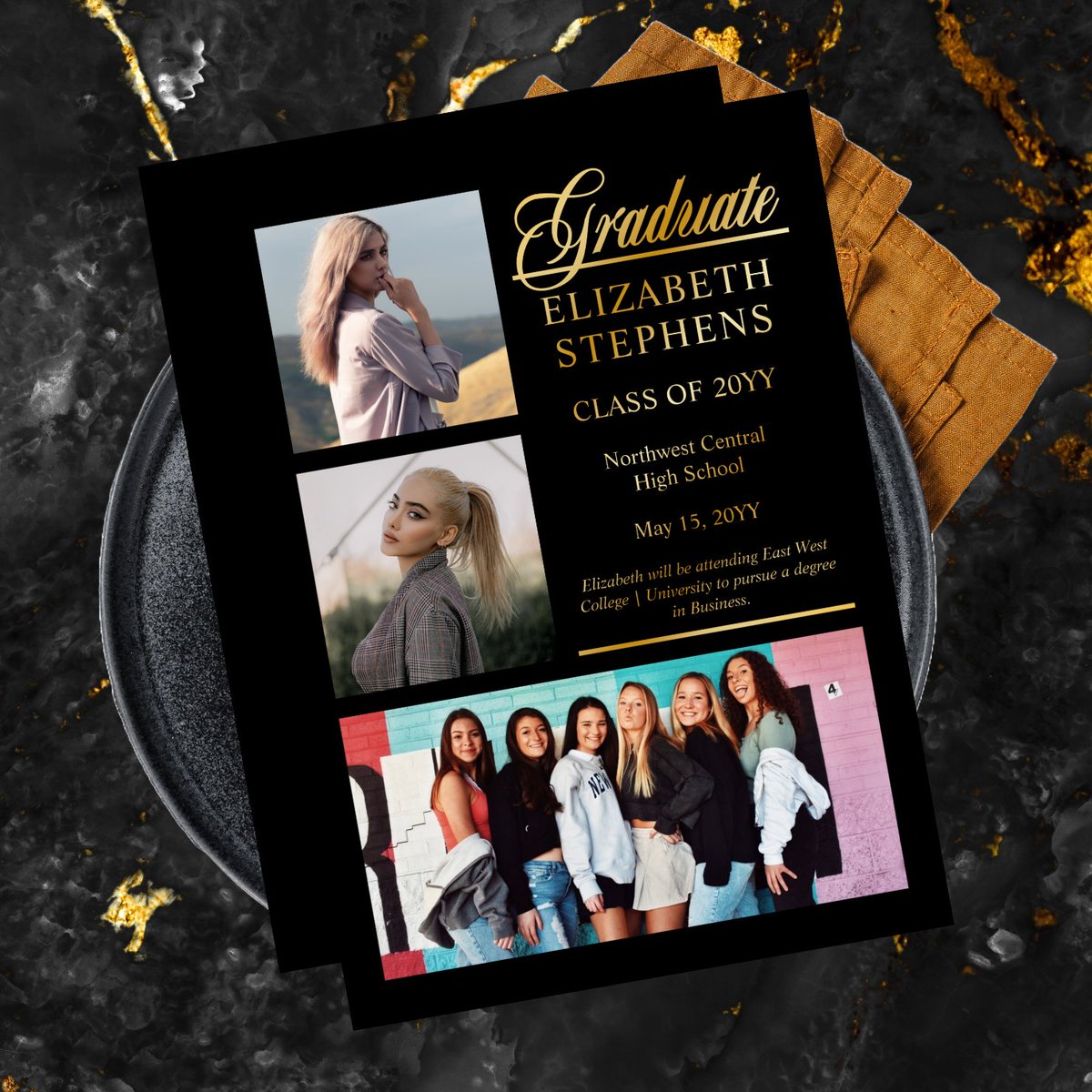 Elegant Classy Graduate Black | Gold Foil Graduation 3 Photo Foil Invitation zazzle.com/classy_elegant… #graduate #scripttext #goldfoil #realfoil #blackandgold #black #elegant #threephoto #classof2024 #modern #simple #stylish #graduation #grad #graduating #senioryear #zazzlemade