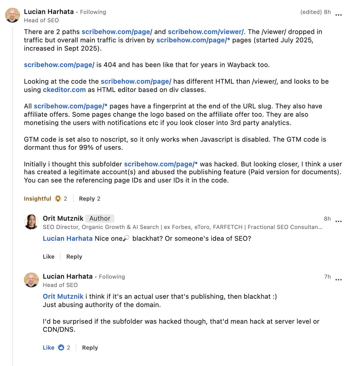 Looks like Scribe went blackhat - is it planned? Or some kind of negative SEO attack on them going on👀🕵️ 🔎I was looking into the B2B onboarding space for a consultation, doing some competitive research at scale through my trusted and recently favourite tool in the industry