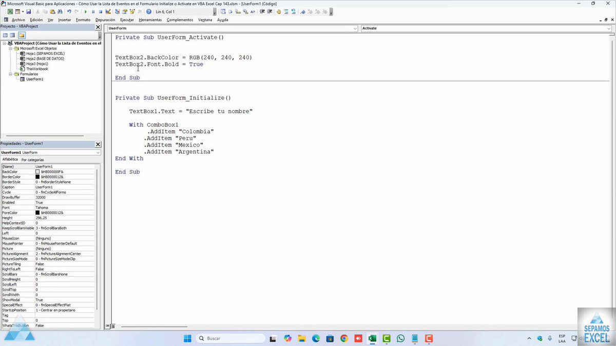 Cómo Usar la Lista de Eventos en el Formulario Initialize o Activate en VBA Excel Cap 143 #sepamosexcel #sepamosexcelvba #vbasepamosexcel #sepamosexcelcurso #sepamosexcelviral #excelsepamos #sepamosexcelmacros #excelsepamos #vbasepamosexcel #excelexclusivo youtu.be/4o9kYSdrEmk