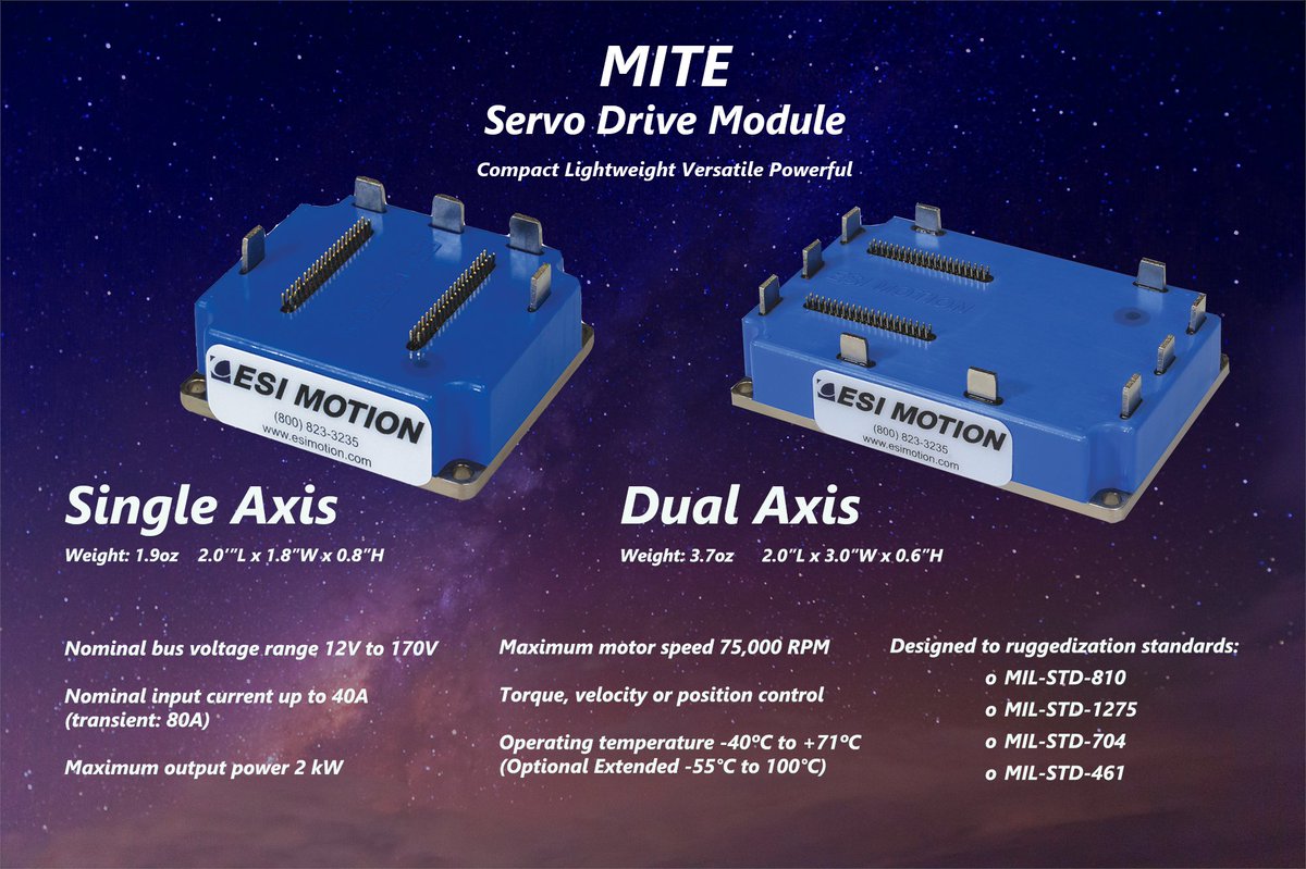 See what the Mite #servodrive module can do for you! Single Axis: esimotion.com/products/servo… Dual Axis: esimotion.com/products/servo… #servo #servodrivemodule #military #industrial #space #robotics