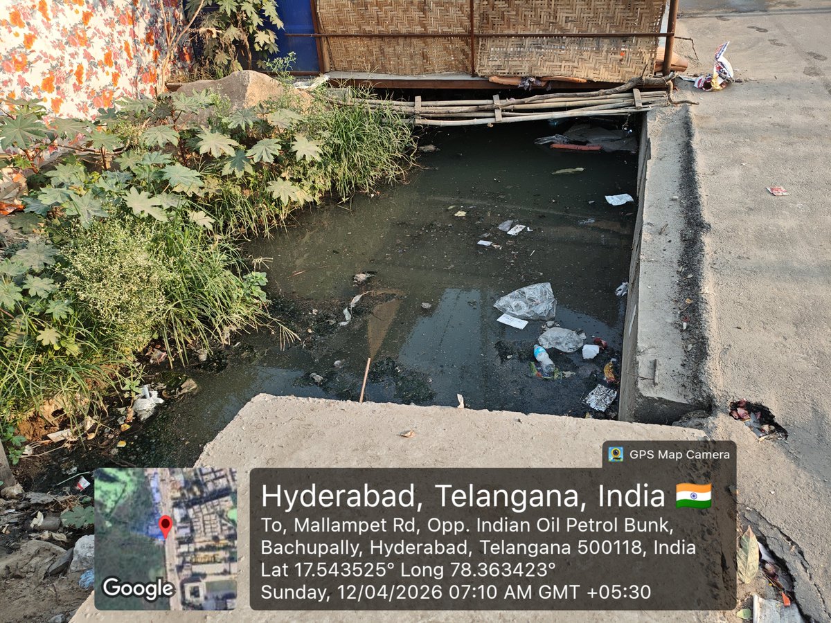 When will be death trap going to covered and when will be the stagnant #Sewage cleared from these #Rain water RCC Box ducts of #Bachupally to #Mallampet road? @DC_Nizampet @MC_Cyberabad @HMDA_Gov @GummallaSrijana @CMC_Offcl @jayesh_ranjan @TelanganaCMO