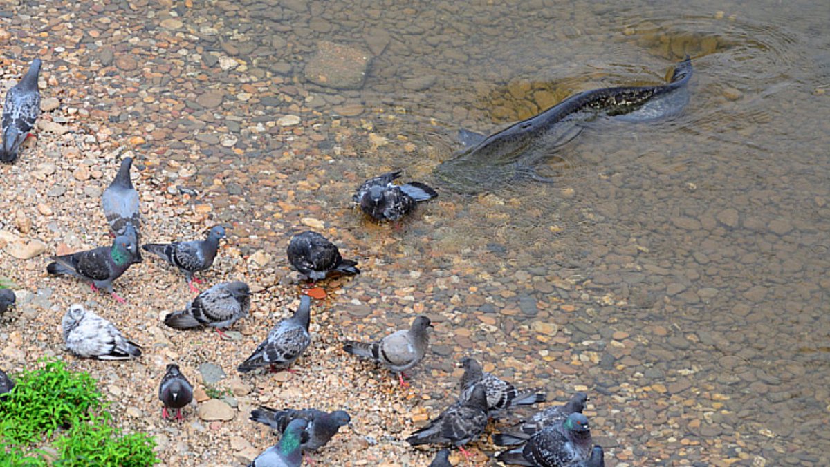 Giant European #Silurus glanis catfish are very cunning predators. They habitually stalk pigeons and strand themselves to catch them.