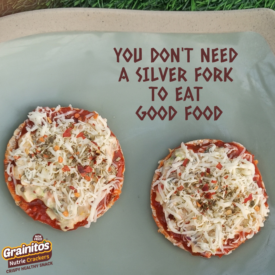 You dont need a #silverfork to #eat #goodfood Make #crisp #breadpizza on #grainitos #nutriecrackers made from 7 #Grains 5 #Seeds with #oats and #Soya are #POPPED #notfried #notbaked #quickrecipes #healthyrecipe #poppizza #dietpizza #eatwell #stayfit
