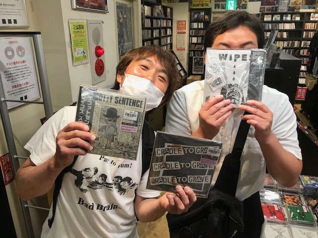 WIPESとのSPLIT 7インチをリリースしたばかりの、BOYCOTTT SENTENCEのTSUJIさんと、新鋭レーベルSKULL SCREAM RECORDSオーナーの、どざいもんた氏ご来店! blog-shibuya-punk.diskunion.net/Entry/17038/ #WIPES #BOYCOTTTSENTENCE #SKULLSCREAM #どざいもんた