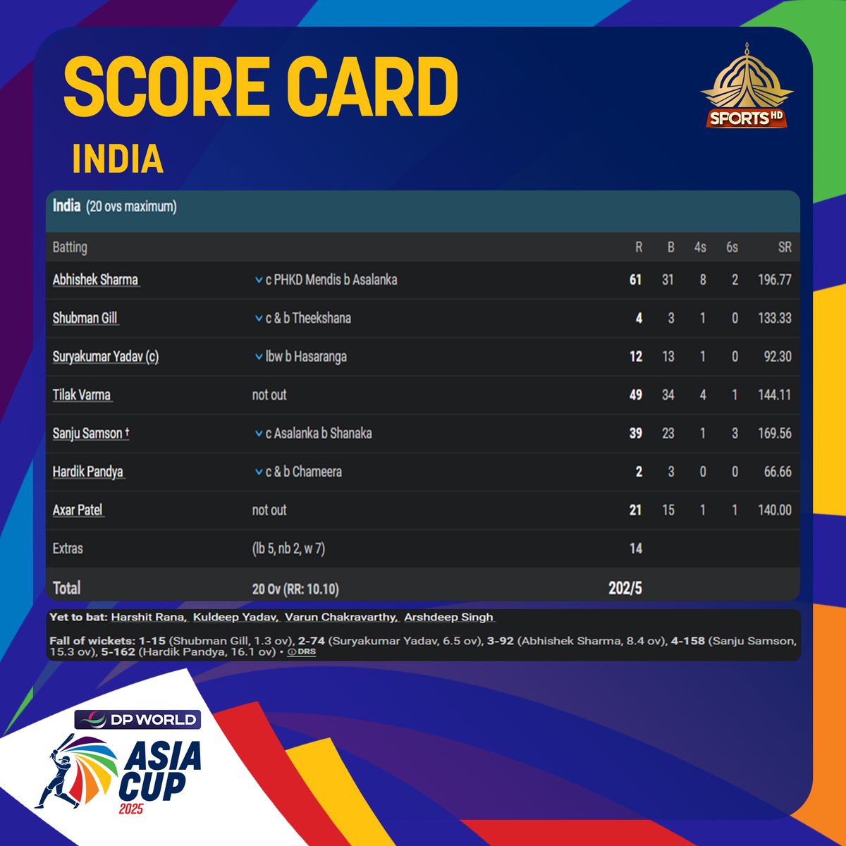 India posts a strong 202/5 in 20 overs 💥 Sri Lanka to chase under pressure after choosing to field! 🇮🇳🇱🇰 #SLvIND #AsiaCup2025 #SuperFours #PTVSports