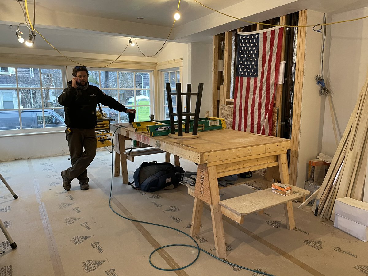 Successful day at the TOH Narragansett House. The outside is starting to take form. Retractable liner going on the #soakepool with @kevinoconnortoh Wood fired Pizza Oven warming hands @aaronsesin from @sweenor_builders making the calls! #outdoorliving