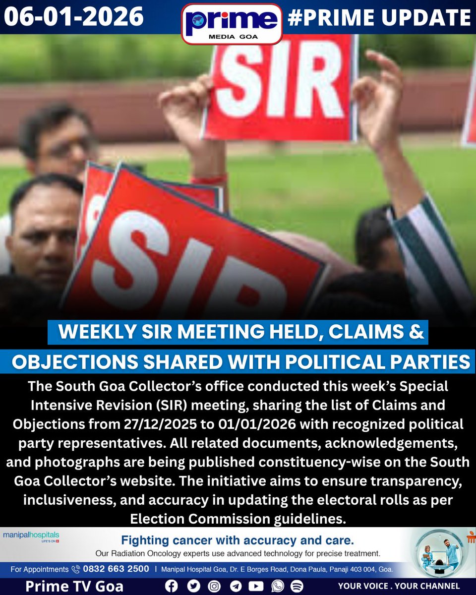 Weekly SIR Meeting Held, Claims & Objections Shared with Political Parties #SIR2026 #ElectoralRolls #SouthGoa #ElectionTransparency #GoaPolitics #VotingRights #ElectionCommission #PoliticalParticipation #ClaimAndObjection #GoaNews #DemocracyInAction
