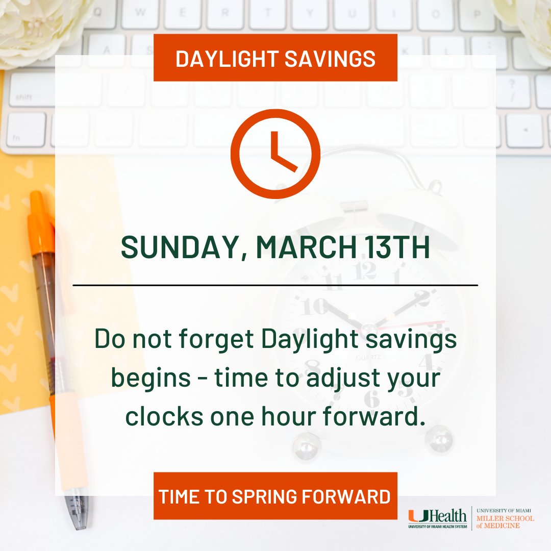Daylight savings begins tomorrow, March 13th – time to adjust your clocks one hour forward. #SpringFoward