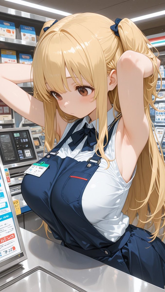 レンタルショップのバイトで 『脇の下レンタル』されました… 両手上げてお客さんの前に晒す羽目に… お客さんのリクエストに応えるのも仕事かな…?って思って 見せちゃった…(小声) 今めっちゃ後悔してる… 恥ずかしすぎて顔真っ赤です💦 #stablediffusion #脇の下