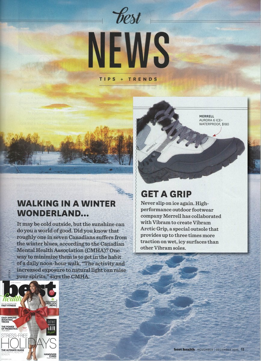 Get a grip on winter with @MerrellCanada's Vibram Arctic Grip technology featured in the December Issue of @besthealthmag #StickItWinter