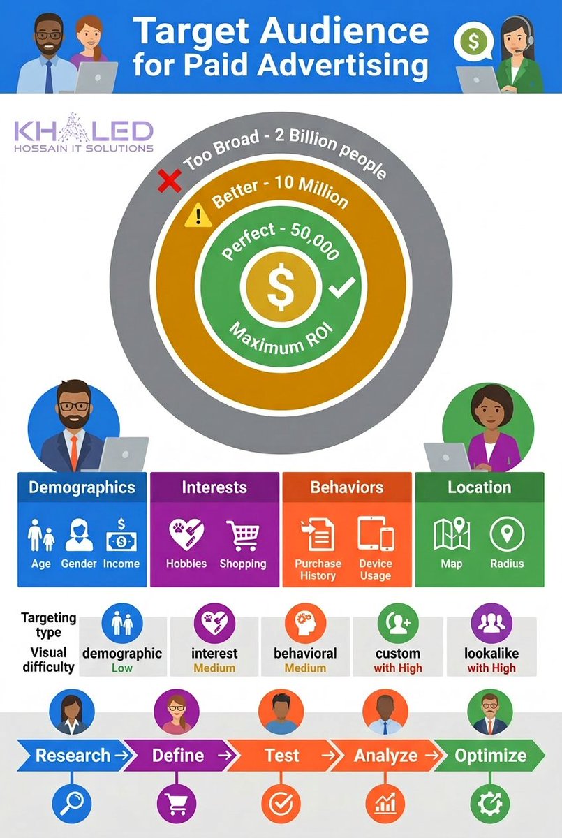 Who is the Target Audience for Paid Advertising? | Khaled Hossain IT Solutions Guide Learn who the target audience is for paid advertising and how to find the right customers. Beginner guide by Khaled Hossain IT Solutions. #PaidAdvertising #TargetAudience #DigitalMarketing