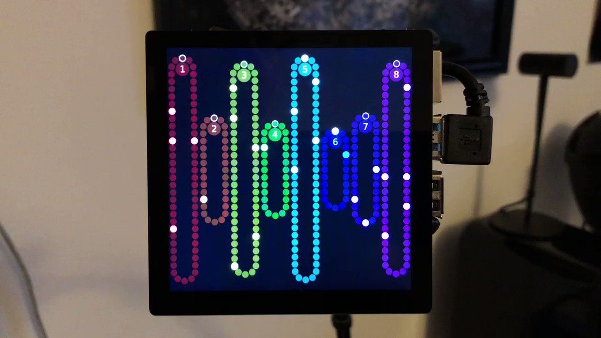 More #Processing coding using the @pimoroni #hyperpixel touch screen and a #taspberry pi 4. On screen single-note-triggering sequencers sending #midi to @expertsleepers #DistingEX #eurorack module.