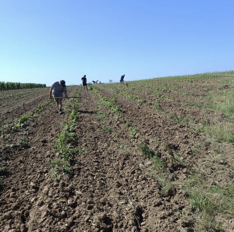 Fin de semaine intense: le palissage est terminé, tous les plantiers 🌱 sont piochés et arrosés 🚿 (seuls les bébés bien sûr!): un énorme travail ! Bravo à toute équipe ! #teamatwork #biodynamicwine #Fieldblend #Terroirwine #greatteamwork❤️
