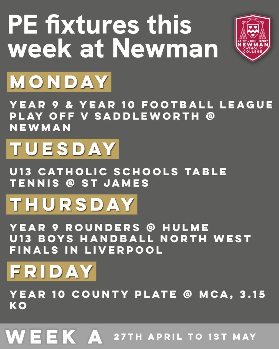 It's another busy week for our sports teams! Check out this weeks fixtures! Good luck everyone! #TeamNewman