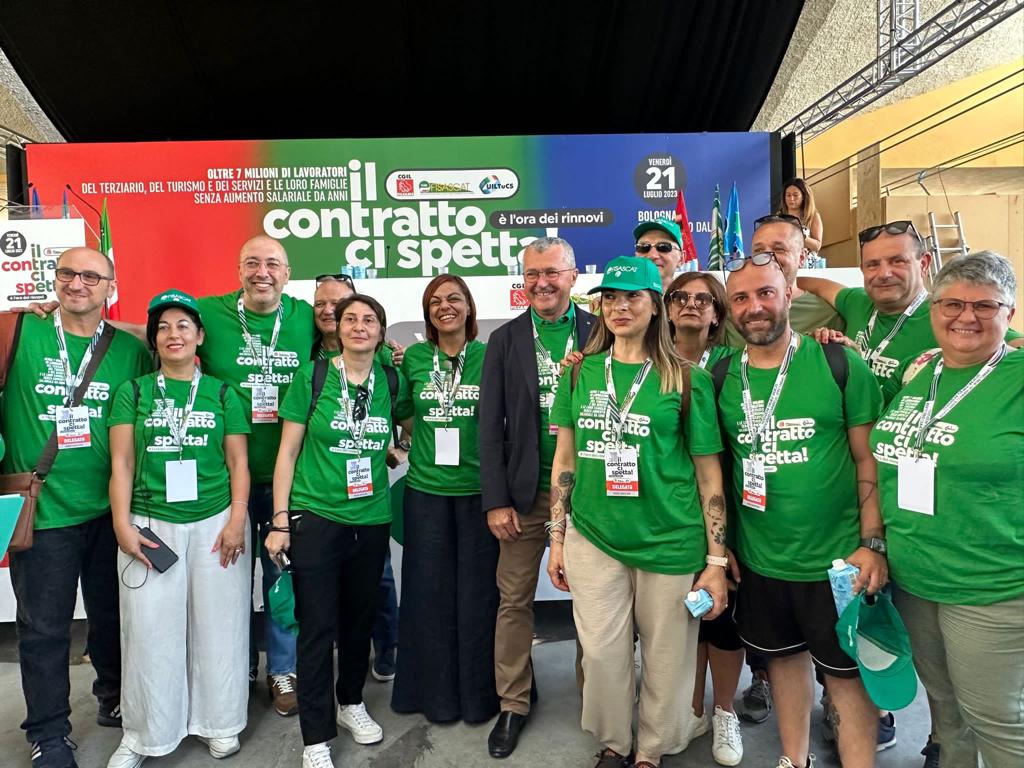 #21luglio Eccoci a Bologna in piazza Lucio Dalla per partecipare all'assemblea delle lavoratrici e lavoratori del #terziario, #turismo e #servizi. È l'ora dei rinnovi dei contratti nazionali! #IlContrattoCiSpetta @FisascatCisl73