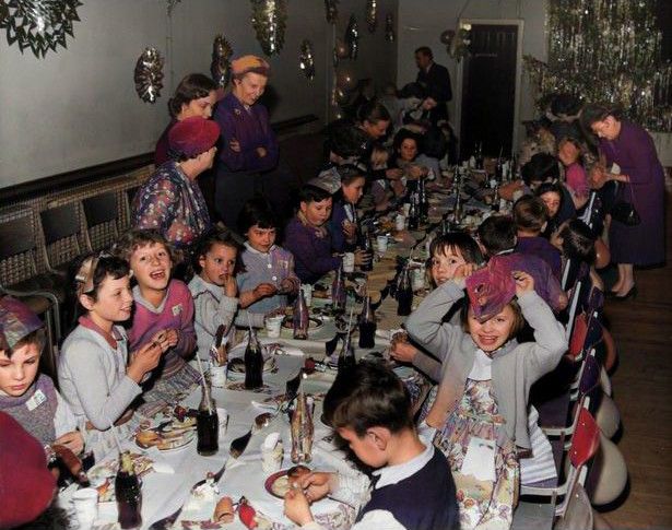 Children from Camberwell, London, enjoying a Christmas party given by wives of men attached to the American embassy in December 1957. #camberwell #thefifties #the50s #christmasparty #kidsparty #london