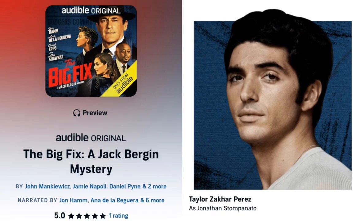 Tomorrow is the release of ‘The Big Fix: A Jack Bergin Mystery’, the audiobook thriller featuring Taylor Zakhar Perez with his voice acting debut! Audible is offering a free 30-day trial or a 3-month limited time offer of $0.99/month. 🔗: audible.com/pd/The-Big-Fix…