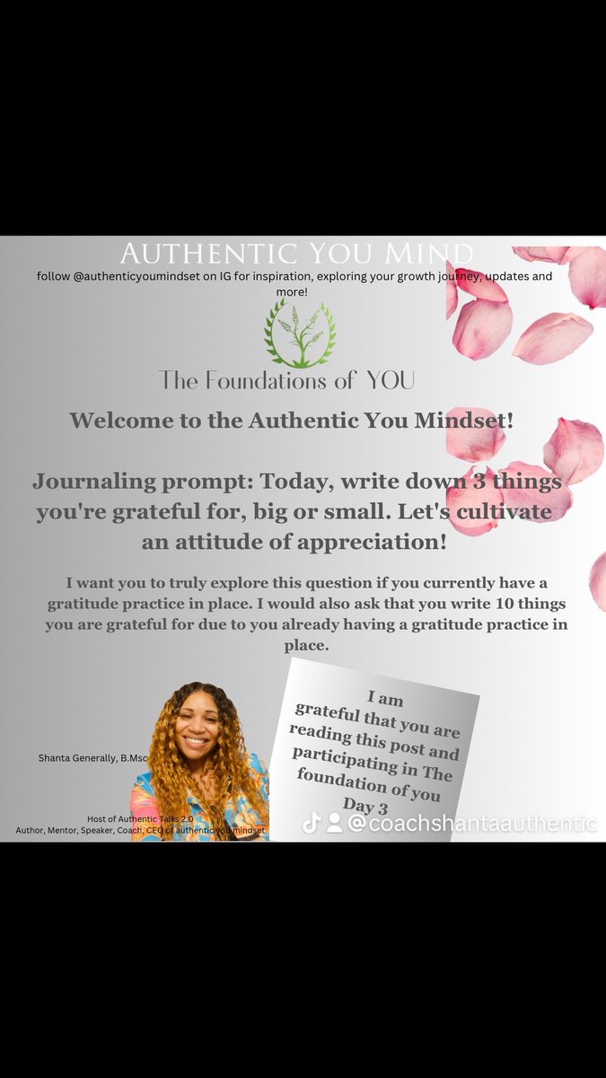 This week I will be sharing The Foundations of YOU 7 full days right here for you. #Thefoundationsofyou #shantagenerally #wellness #smile #mindfitness #motivation #selfdiscovery #peace #authenticyoumindset #beYou #authentictalkswithshanta