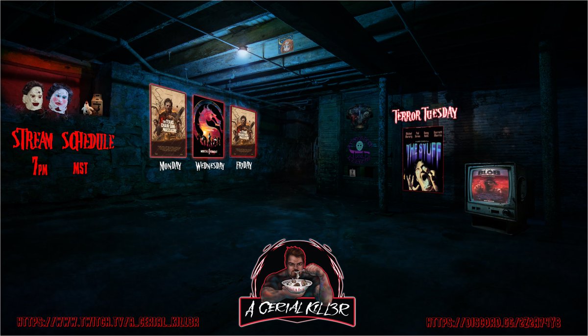 It’s schedule time!! This week we will be playing @TXChainSawGame and finishing the @MortalKombat Story. Since it’s October all movie nights will be a double beheaders starting with #thestuff and #theblob #Horrorfam all links are in the linktree linktr.ee/acer1alkill3r