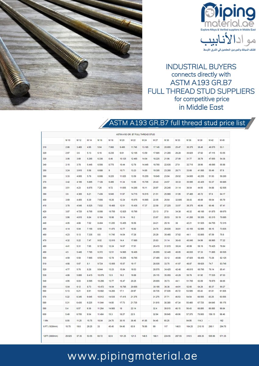 #threadedstud #threadedstudpricelist #studpricelist #fullthreadedstud #fullthreadedstud #steel #steelsupplier #steelmanufacturer #steelmills #longproducts #steelprice #dubai #unitedarabemirates #middleeast #suppliers Visit us: bit.ly/3LLhXiy
