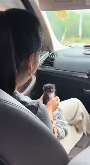 First car ride to a forever home, and the world is a lot to take in! Protecting this little ball of fluff with every mile. Adopt, don't shop! 🐾 #TinyKitten #CatLovers