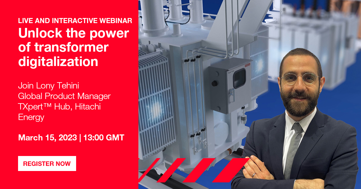 Last chance to join us LIVE for an interactive webinar on transformer digitalization. Register now and join us tomorrow, March 15 at 13:00 GMT➡ hitachienergy.social/BEn Lony Tehini, our global expert on digitalization product manager of #TXpert Hub will help you #MakeDigitalReal.