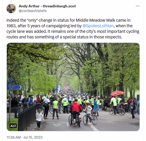 #MiddleMeadowWalk 👍Fantastic history thread by @cocteautriplets We can add a few pictures re our 7-year-long late 1970s campaign 1978: #NoCycling 1979: Onsite campaign event 1983: Opening to🚲 🙋♀️And here's our (#typewritten!) 1979 campaign document -> spokes.org.uk/wp-content/upl…