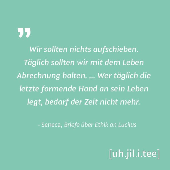 "Wir sollten nichts aufschieben. Täglich sollten wir mit dem Leben Abrechnung halten. ... Wer täglich die letzte formende Hand an sein Leben legt, bedarf der Zeit nicht mehr." Seneca, Briefe über Ethik an Lucilus #uhjilitee #taskbook #Productivity #ProjectManagement