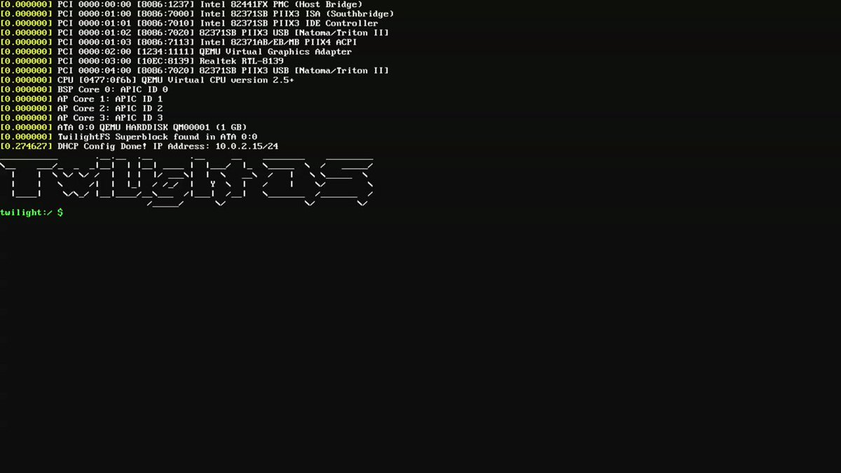 Twilight OS finally got a VI like editor working... TTY implementation follows linux so this vi works on linux and my os the same way #osdev #linux #unixprogramming #rust