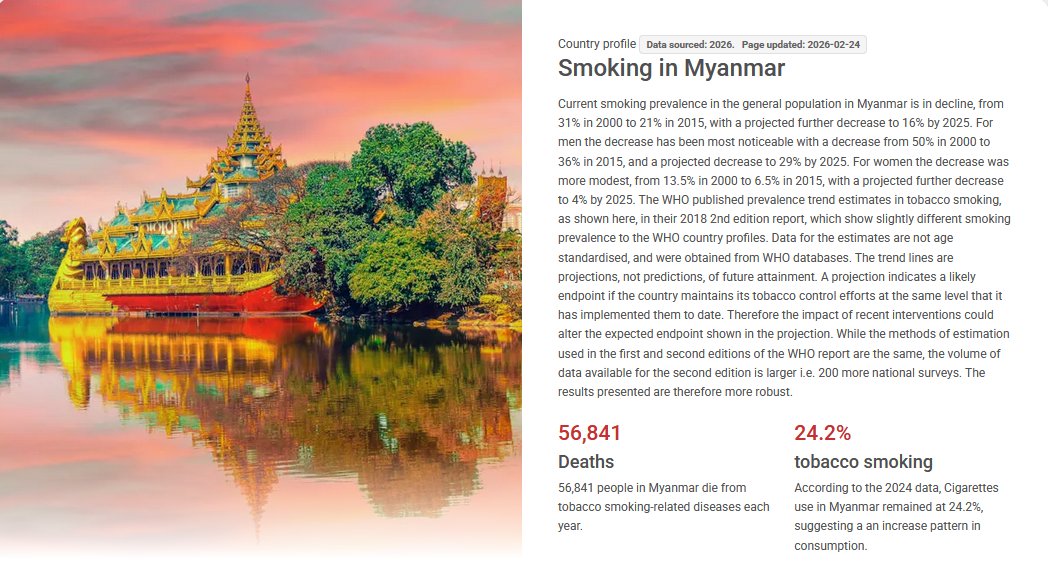 Myanmar officially banned #vapes in February 2026, depriving approximately 7.5 million current smokers of these crucial #safernicotineproducts Find out more on the #GSTHR Database👉gsthr.org/countries/prof…