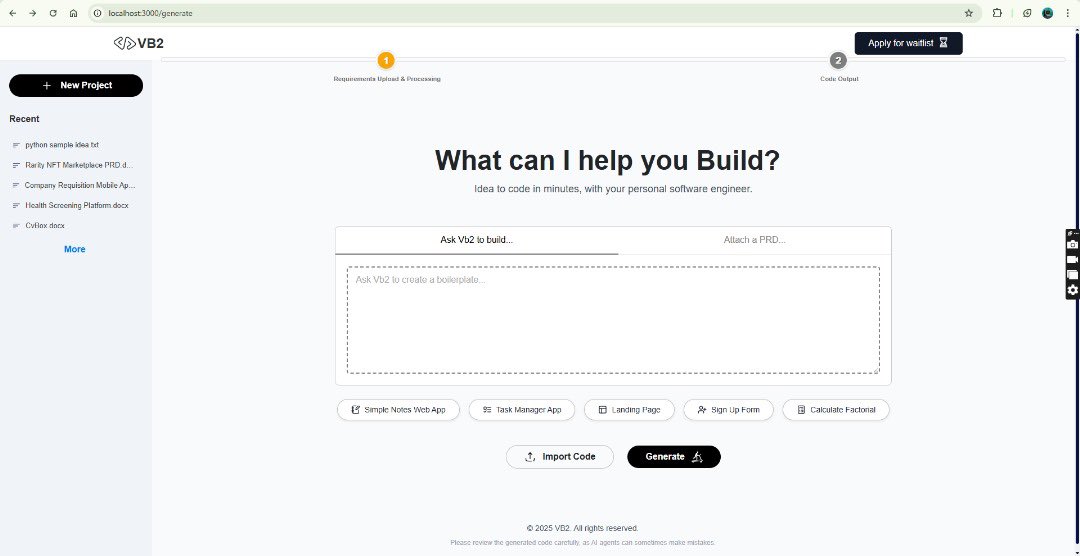 🚀 Introducing VB2: Turn ideas into code in minutes! Our AI-powered platform generates code, offers an AI Copilot, and accelerates development. Try the MVP now at vb-2.netlify.app and share your feedback! #AI #Coding #VB2