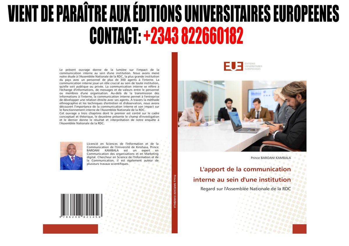 #Vient de paraître aux éditions universitaires européennes ! ✍️Prince BAROANI Chercheur en SIC/UNIKIN @AssembleeNatRDC @SamuelMbemba4 @KanyindaPat