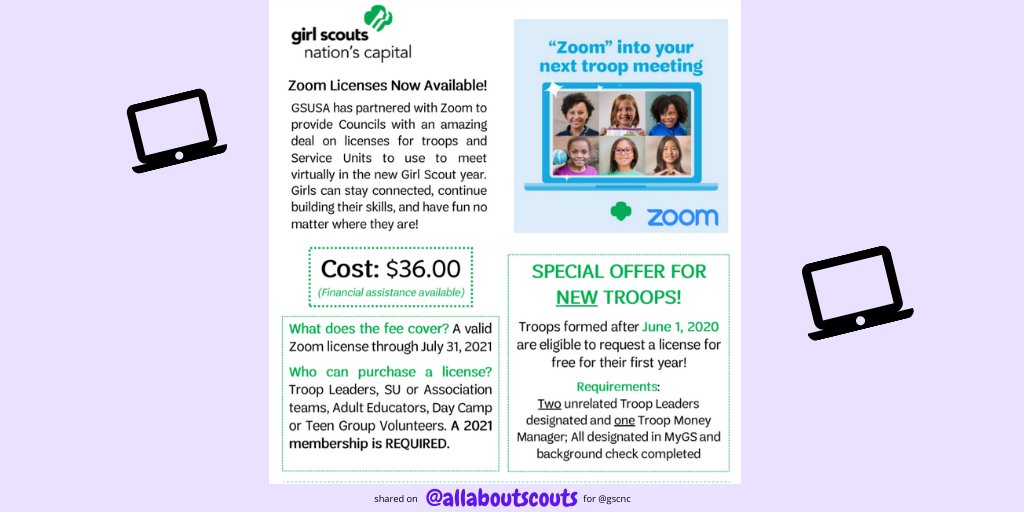 Sign up for the @girlscouts troop @zoom_us account for @gscnc troops 👉🏽form.jotform.com/GSCNCMembershi… #allaboutscouts #zoom #virtualscouting #gscnc #girlscouts