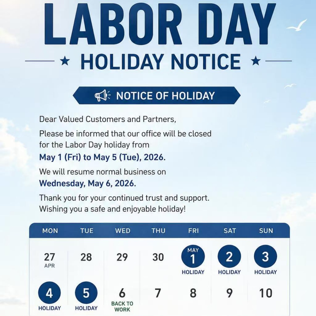 📣 Notice~ In celebration of International Labour Day, our office will be temporarily closed from May 1st to May 5th, 2026. 🙏Thank you for your continued trust and support! 🧧💰✨ If you have any questions during this period, please get in touch with me! #vprecision