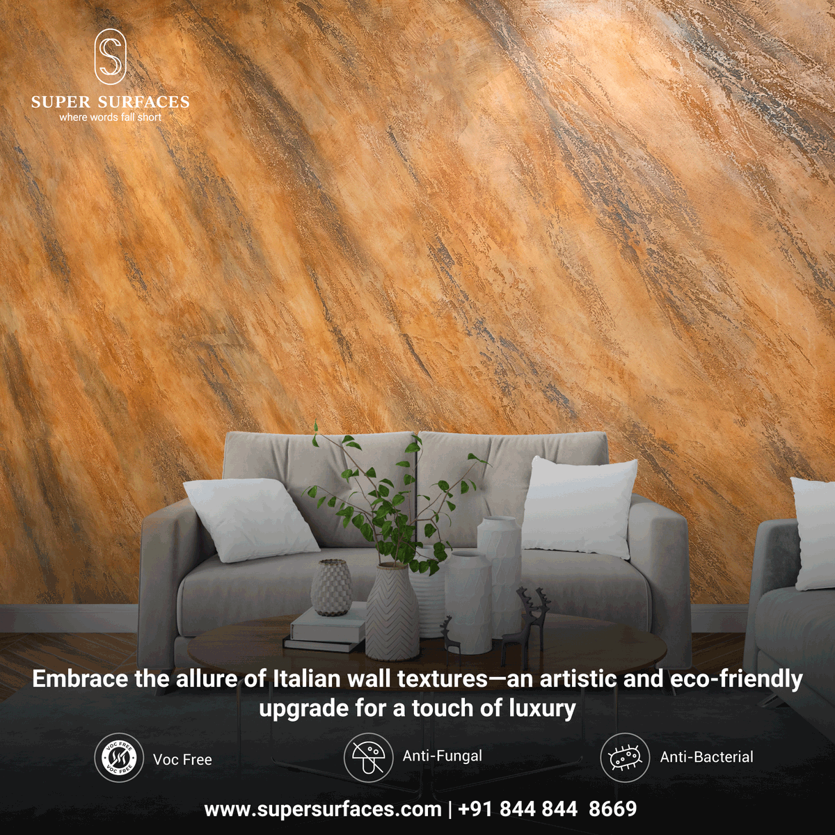 Wall that not only looks and feels good but does good too. Embracing eco-friendly vibes for a more sustainable home. #ecofriendlywalls #texturetuesday #walltexture #wallfinish #italianwalltexture #venetianplaster #supersurfaces #limeplaster #italianfinish