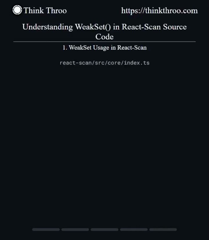 Understanding WeakSet() in React-Scan Source Code Give my project a star on Github - github.com/ramu-narasinga… Best practices inspired by open-source projects - app.thinkthroo.com/architecture Codebase architecture of Open Source projects - #JavaScript #WeakSet