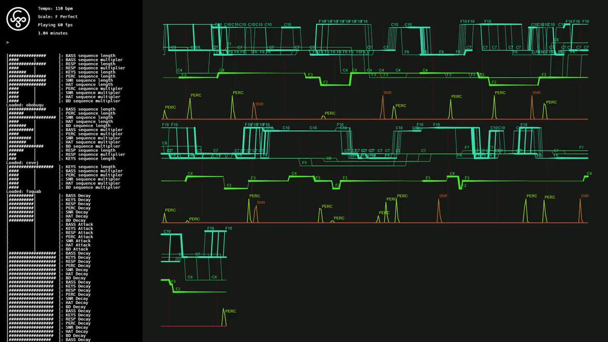 Playing around with my auto-transcribe code again. Also showing my controller movements on the left side. Trying to figure out the best way to visually communicate to the audience what the hell is going on. #javascript #p5js #webmidi #audiovisual