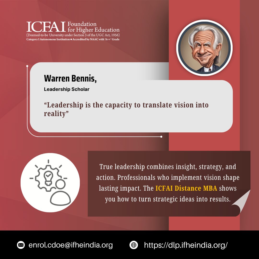 True leadership combines insight strategy, and action. Professionals who implement vision shape lasting impact. The ICFAI Distance MBA shows you how to turn strategic ideas into results Know more: dlp.ifheindia.org #icfaidistancebba #ICFAIDistanceMBA #WorkingProfessionals