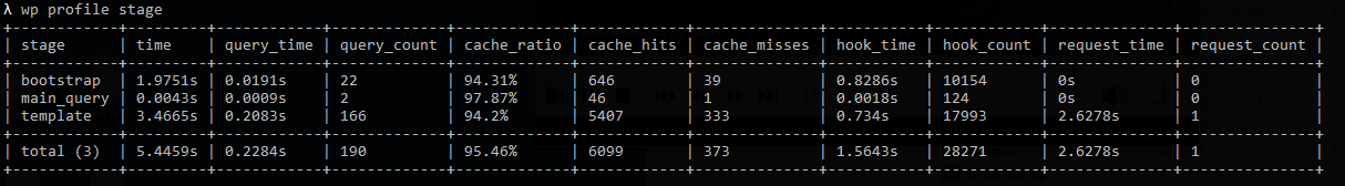 بهترین ابزار برای بررسی بهینه بودن #وردپرس استفاده از دستور Profile Command در #خط_فرمان_وردپرس یا #WP_CLI هست این ابزار میاد طبق سه قسمت اصلی #هسته_وردپرس کوئری ها و قالب ریکوئست ها رو بررسی میکنه.تو عکس ببین 5 ثانیه زیاده واسه لود لینک عکس : s4.uupload.ir/files/request_…