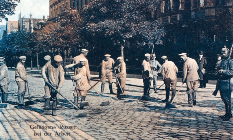 Insterburg, Ende 1914: Wo kurz zuvor noch russische Truppen die Stadt besetzten, fegen nun russische Kriegsgefangene die Straßen. 🧹 Ein Symbol für die dramatische Wende in Ostpreußen nach den Schlachten von Tannenberg und an den Masurischen Seen. #WWI #Ostpreußen
