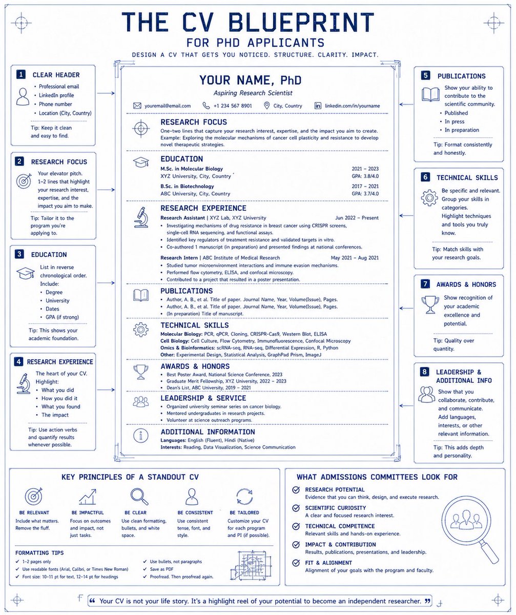 Students who win fully-funded PhDs design their CV like a research argument. Here’s how you can do it too. This blueprint breaks down what actually makes a CV stand out: * not just what you did, but how you think * not just tasks, but impact and insight * not just skills, but