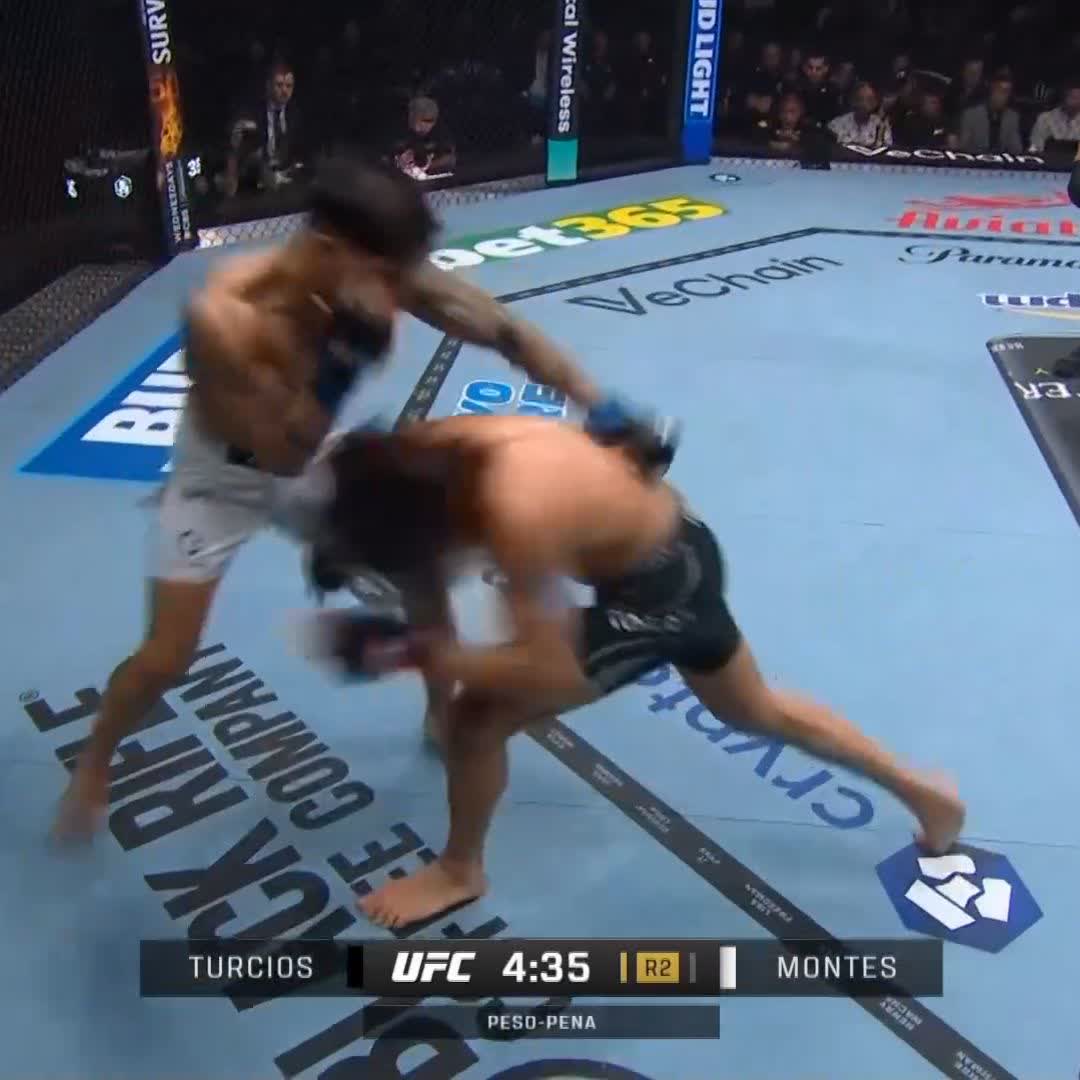 ATROPELOU! 🇻🇪 Alberto Morales finaliza 🇺🇸 Ricky Turcios no 2° round, estreia com vitória e garante pelo menos o bônus de 25k. #UFCBR | #UFC326