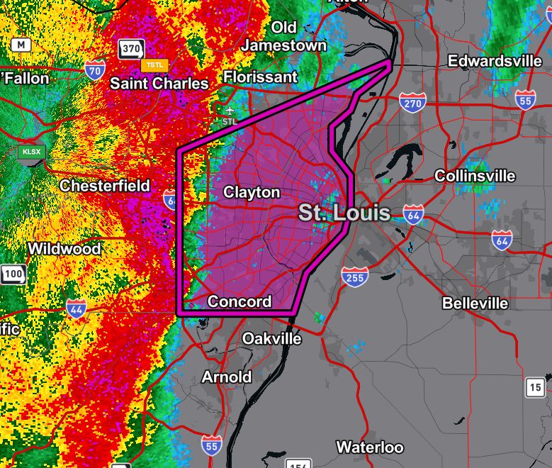 TORNADO WARNING for St. Louis, Missouri! Seek shelter immediately if you are in this warning!